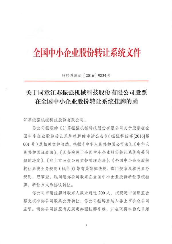 江蘇振強機械科技股份有限公司 >> 公司簡介 >> 資質(zhì)證書 >> 允許振強股份掛牌