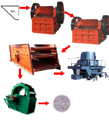 沙石生產(chǎn)線,砂石生產(chǎn)線,砂石生產(chǎn)線設(shè)備,砂石線,砂石生產(chǎn)設(shè)備基本流程:大塊石料經(jīng)料倉由振動給料機均勻地送進鄂式破碎機進行粗碎,粗碎后的石料由皮帶輸送機送到反擊式破碎機進行進一步破碎;不滿足粒度要求的石子由皮帶輸送機返料送到反擊式破碎機進行再次破碎,形成閉路多次循環(huán)。細碎后的石料由皮帶輸送機送進振動篩進行篩分,篩分出幾種不同規(guī)格的石子,滿足粒度要求的石子由成品皮帶輸送機送往成品料堆;成品粒度可按照用戶的需求進行組合和分級,為保護環(huán)境,可配備輔助的除塵設(shè)備。